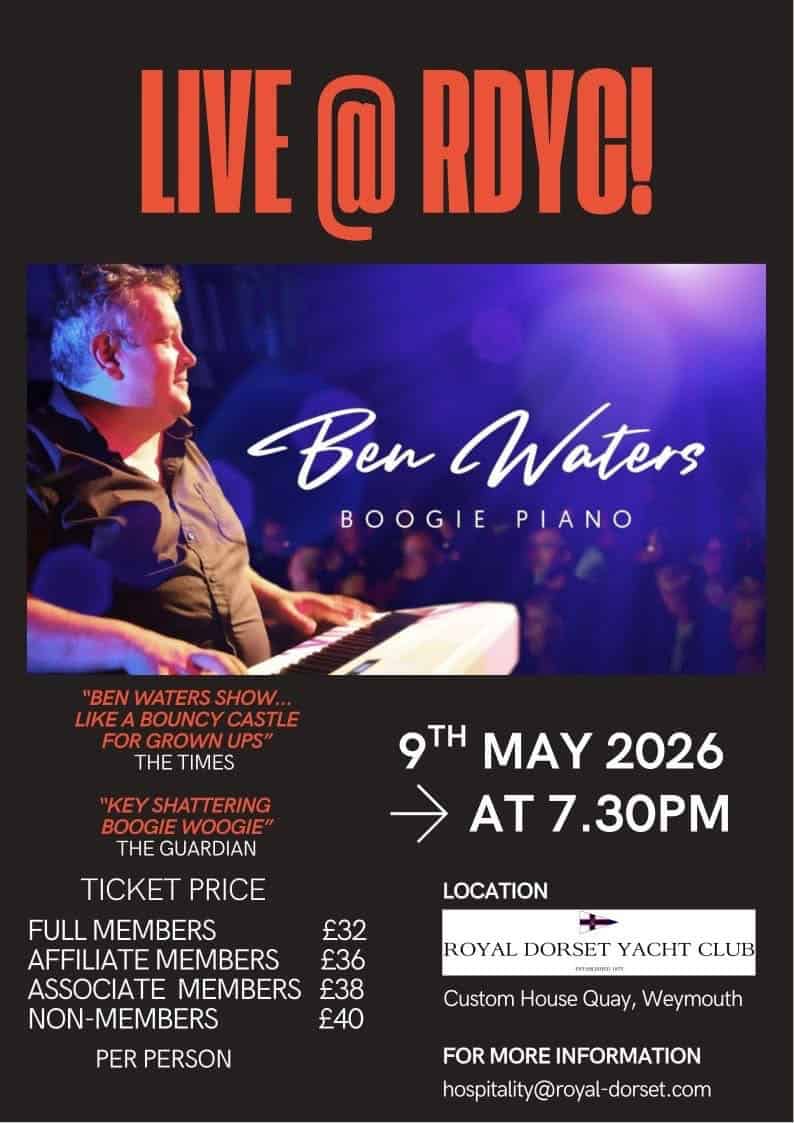 Now, for ONE NIGHT ONLY, the incredible Ben Waters brings his electrifying presence to the intimate setting of The Royal Dorset Yacht Club!