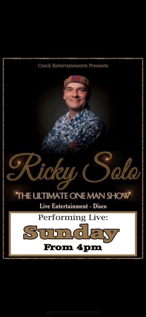 ⏰ From 4.00pmRound off the weekend with an afternoon live show from Ricky Solo. Known for his popular one-man performances, Ricky delivers a crowd-pleasing mix of live music and disco favourites that works perfectly for a relaxed Sunday session.